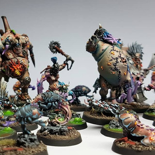 On my second post I would like to show you my squad of Gellerpox Infected from the Rogue Trader expansion painted as a commission. I really enjoyed these models. Some of the models were my entry at Hussar miniature painting competition in Warsaw and managed to get finalist pin. I love colorful miniature painting so it was a lot of fun for me :)